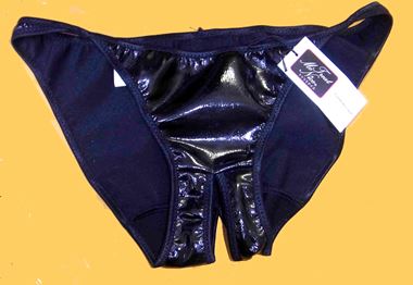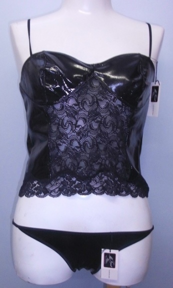 色:黒。 PVCとストレッチレースのリングブラ。 オープンクロッチのショーツ。